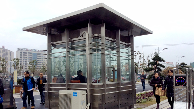 南通海門(mén)市政府不銹鋼保安崗?fù)ぃ烤x優(yōu)質(zhì)304不銹鋼板,久經(jīng)耐用美觀(guān)大方。焊接技術(shù)精湛,幾乎看不到焊點(diǎn)。