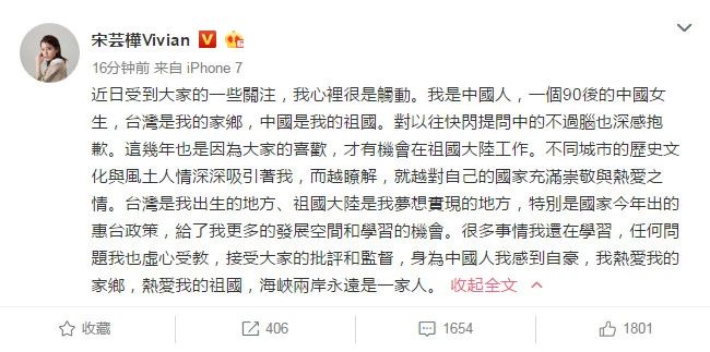 不過這為90后女生非常迅速地做出了回應。她說:我是中國人,臺灣是故鄉。