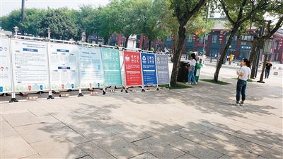 景區在廣場上設立了垃圾分類細則宣傳板。