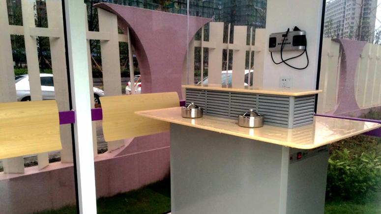 由于南京恒生制藥吸煙亭主要是供外國來賓和國家領(lǐng)導(dǎo)使用的,所以整體的配置偏向高端,高級鋁扣板吊頂,仿木地板瓷磚,電子點煙器,空氣凈化器,異形木紋靠背。吸煙亭內(nèi)部空氣凈化器,大理石臺面,既可以當茶幾又可以空氣凈化。電子點煙器,即按即用,有了點煙器,再也不用擔心忘記帶打火機帶來的尷尬了,這樣在安全的層面上考慮,工人再也不會帶著打火機到生產(chǎn)車間,真正從源頭控制住了火災(zāi)。