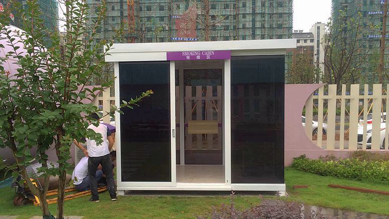 南京恒生制藥吸煙亭玻璃貼了專業(yè)汽車防曬膜,這樣在一定程度上減少了日曬。吸煙亭放在草地上,安裝的過程中有些難度,如果您的安裝現(xiàn)場類似,吸煙亭廠家給出建議是吊裝,或者在草地上墊上鋼板。