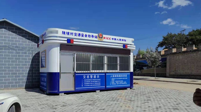 這一款為昆明地區定制的交通安全勸導站,將作為陡坡村交巡警人員的一個辦公場所,對轄區內交通安全宣傳教育工作,對轄區駕駛人員進行安全教育及提醒,對交通違法行為進行處理,糾正工作,處理一些交通事故等。
